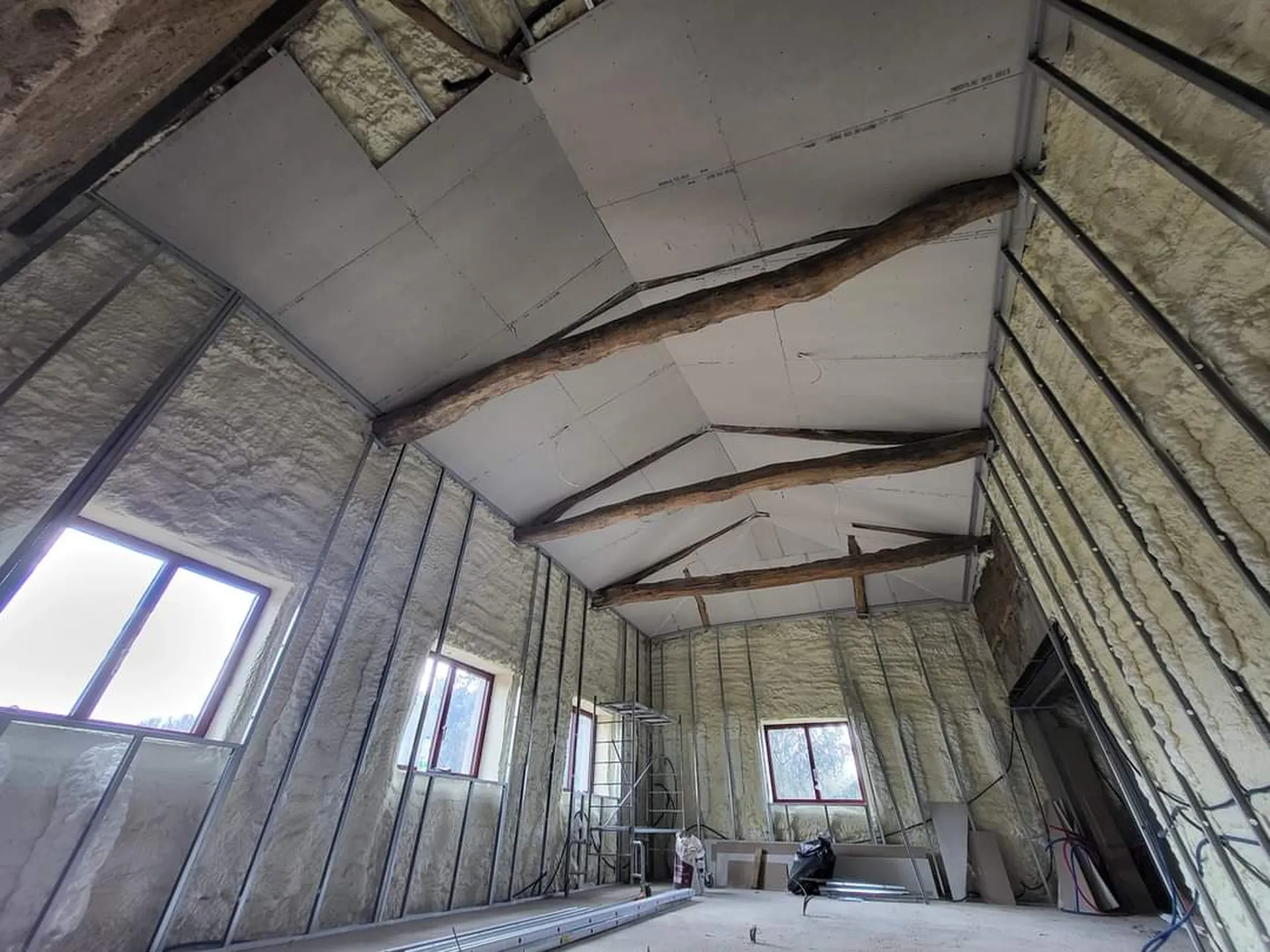 Nous réalisons l'isolation des planchers bas pour un résultat impeccable. Concernant l'isolation des murs, l'isolation par projection de mousse offre un gain de place et une efficacité inégalée.